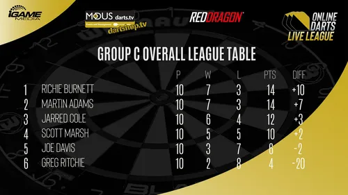 Martin Adams hebben zich vanuit Groep C geplaatst voor de finalepoule in de finaleweek van de Online Darts Live League.