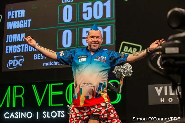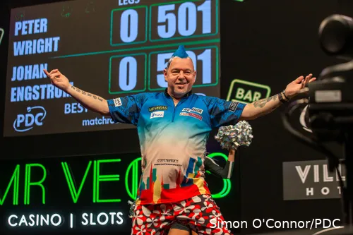 Peter Wright, die zijn grootste successen boekte nadat hij de leeftijd van 40 jaar was gepasseerd. In 1995 maakte 'Snakebite' - nog zonder gekleurd haar - zijn debuut op Lakeside, maar zijn grote doorbraak kwam pas in 2014 toen hij de finale van het WK Darts haalde.