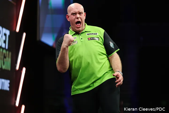 Michael van Gerwen (6-5) op indrukwekkende wijze op de Gibraltar Darts Trophy