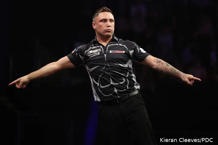 Dimitri van den Bergh. 'The Iceman speelde een uitstekende wedstrijd en liet een gemiddelde van 104.97 noteren, ondanks een finishpercentage van slechts 37 procent.