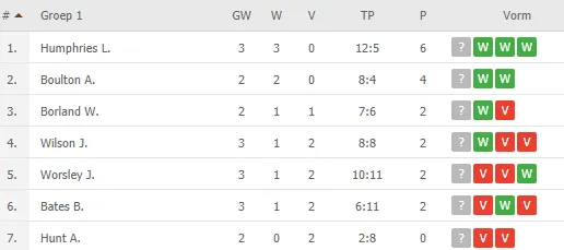 In de eerste groep van de PDC Home Tour III begon Humphries met zeges op Barrie Bates (4-2), Adam Hunt (4-0) en Jonathan Worsley (4-3). Boulton is ook nog ongeslagen, hij startte met twee overwinningen uit zijn eerste twee duels.