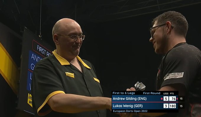 Gilding rekende af met Lukas Wenig. De Engelsman brak de Duitser in de zesde leg met een 13-darter en zegevierde vervolgens met 6-3. In de tweede ronde is Gilding de tegenstander van Brendan Dolan.