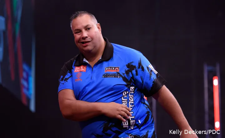 Dan was daar de finale van het German Darts Championship 2025. Dirk van Duijvenbode had zich na een reeks geweldige wedstrijden naar de finale gegooid, terwijl Nathan Aspinall in de halve finale had afgerekend met Gian van Veen. Aspinall mocht de eerste leg van de finale beginnen en pakte die ook meteen door 84 uit te gooien voor een 14-darter. Van Duijvenbode begon sterk met zeven perfecte darts, maar miste de achtste. De Nederlander kon zichzelf wel voor zijn kop slaan, tot grote hilariteit van Aspinall. Toch maakte hij de leg stijlvol af en ging in 10 pijlen uit voor 1-1. Aspinall gooide vervolgens knap 90 uit, en liet dat het publiek duidelijk horen. Tot dan toe hielden beide spelers hun eigen legs, al ging dat niet zonder moeite. Aspinall miste drie pijlen op tops, waardoor Van Duijvenbode opnieuw langszij kwam. Daarna sloeg de Engelsman echter toe met finishes van 100 en 40 om het verschil in legs op twee te brengen.