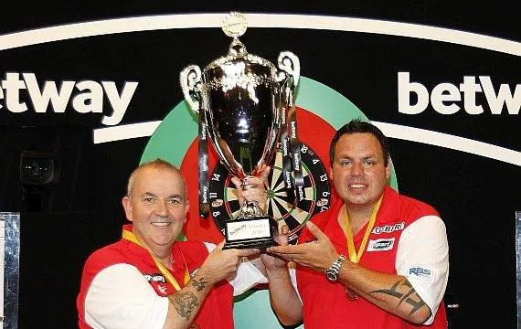 Phil Taylor en Adrian Lewis. In de beginjaren van het landentoernooi waren zij er persoonlijk verantwoordelijk voor dat de eindzege vier keer naar Engeland ging.