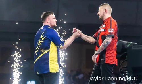 Luke Humphries v Michael van Gerwen Het topaffiche van de kwartfinales is er één tussen de nummers één en drie op de wereldranglijst; Luke Humphries tegen Michael van Gerwen. Humphries is inmiddels al hard op weg om zich ruim voor afloop van de competitiefase te kwalificeren voor de play-offs. Met vijftien punten uit zes speelrondes is 'Cool Hand Luke' al zo'n beetje halverwege. Humphries won al twee weektitels, maar desondanks is het gat met Van Gerwen 'slechts' vijf punten.