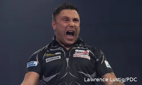 Van Gerwen is de enige overgebleven Nederlander in het toernooi. Landgenoot Dirk van Duijvenbode werd vrijdagmiddag bij de laatste acht uitgeschakeld door tweevoudig wereldkampioen Gary Anderson.