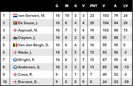 Eindstand in Premier League Darts na zestiende speelronde