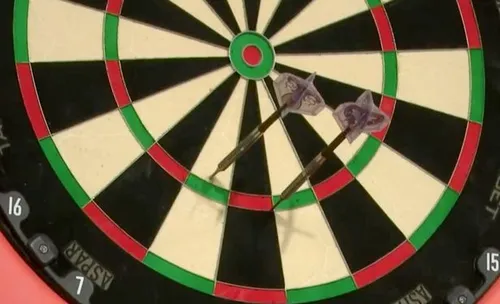 De Amerikaan stond op 77 en gooide een single 19 met zijn eerste pijl. Gates had daarna in principe de single 18 moeten gooien, maar wierp zijn pijl in de single 3. ''Oh nee... Alles was mis aan deze pijl'', zo stamelde Nicholson in zijn commentaar.