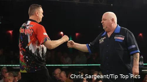 Later op de middag vindt de tweede halve finale plaats tussen Terry Jenkins en Martin Adams. De winnaar van dat duel neemt het zondagavond op tegen Thornton in de finale van dit toernooi.